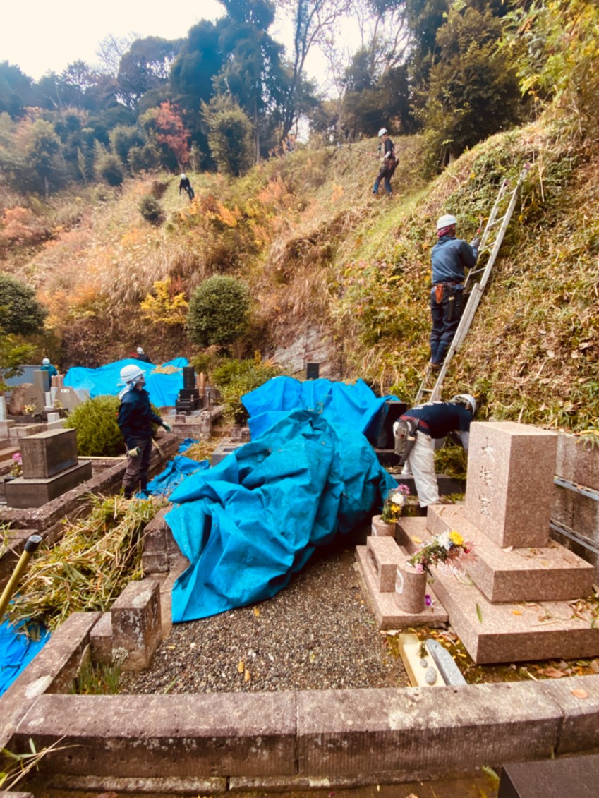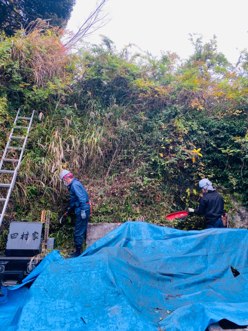 今回も急斜面で体力を要する現場でしたが、お墓まわりが整うよう丁寧に作業いたしました。