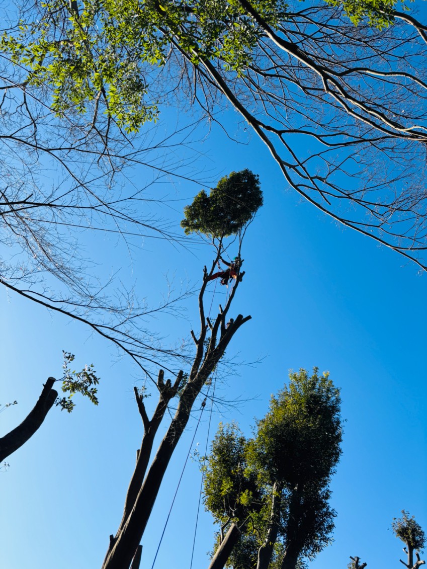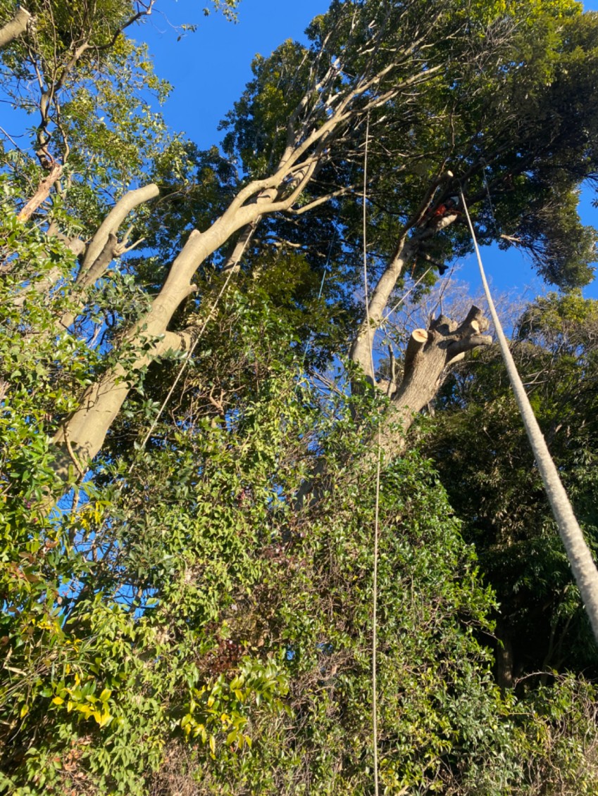 作業の際には枝の落下方向に十分な配慮が必要な状況でした。