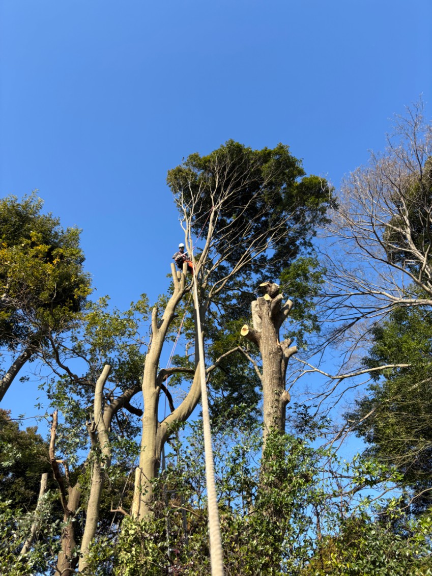 今回も定期的な境内管理の一環として、枝払い作業のご依頼をいただきました。 - 担当者から一言