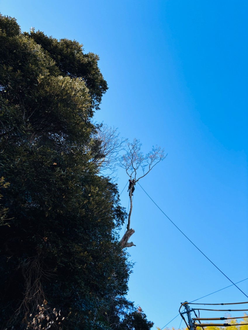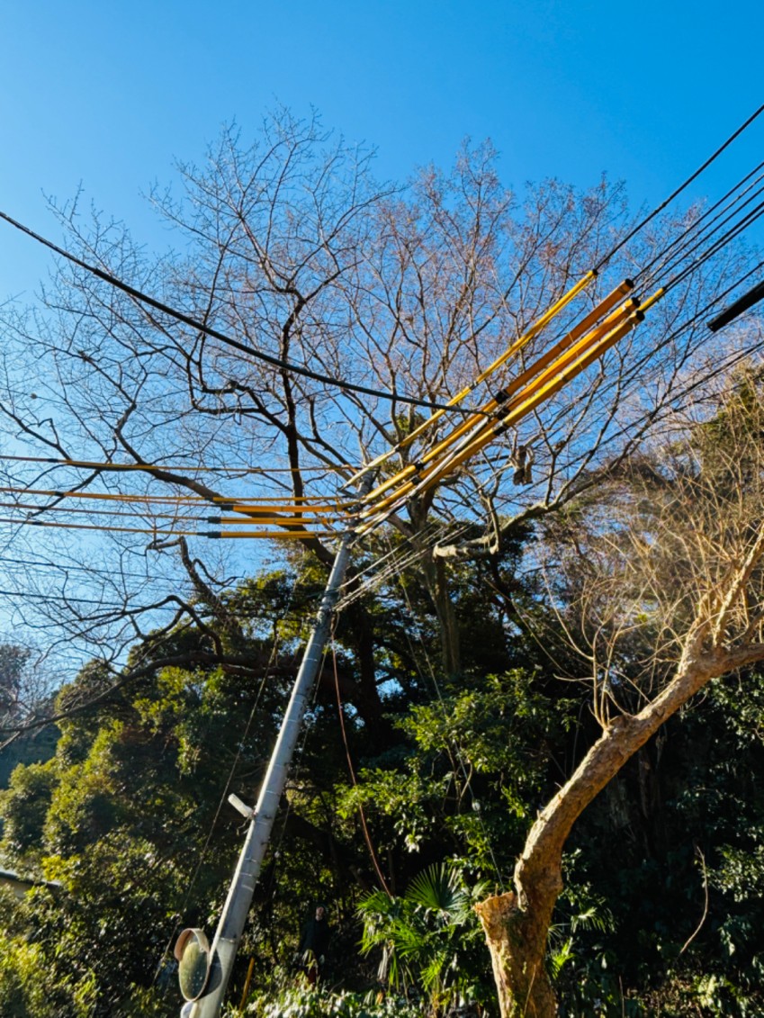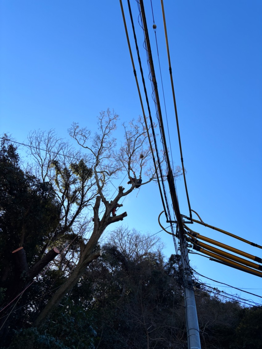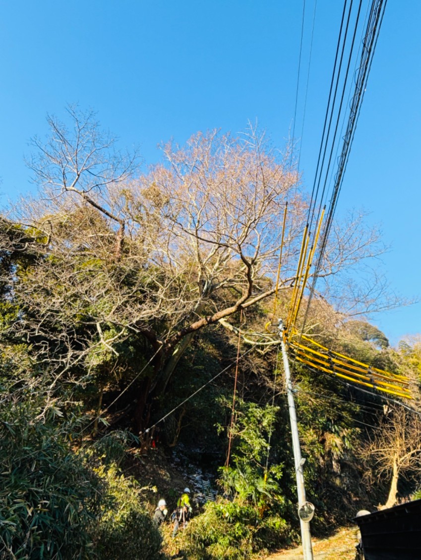 一部は電線に接触・引っかかっている状態でした。